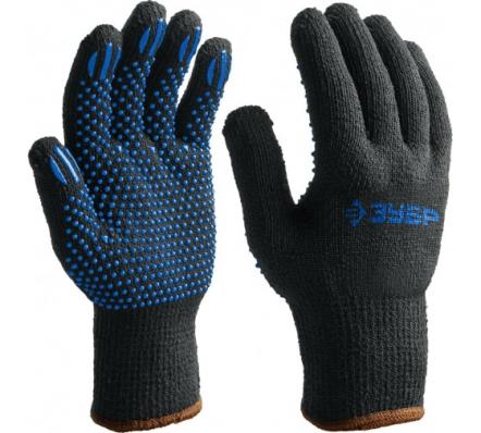 ЗУБР МАСТЕР, размер L-XL, перчатки трикотажные утепленные, с ПВХ покрытием (точка).