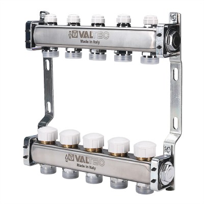 (VTc.582.EMNX) Коллекторные блоки из нержавеющей стали VTc.582 служат для распределения потока транспортируемой среды по контурам системы отопления -- напольного или радиаторного.