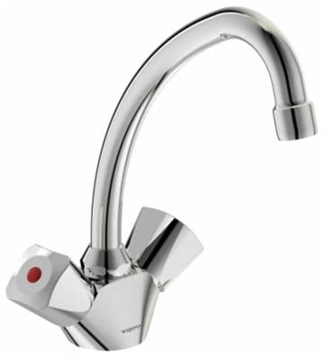 "Практик" смеситель для умывальника двуручковый, трубчатый излив 120мм, без донного клапана, хром